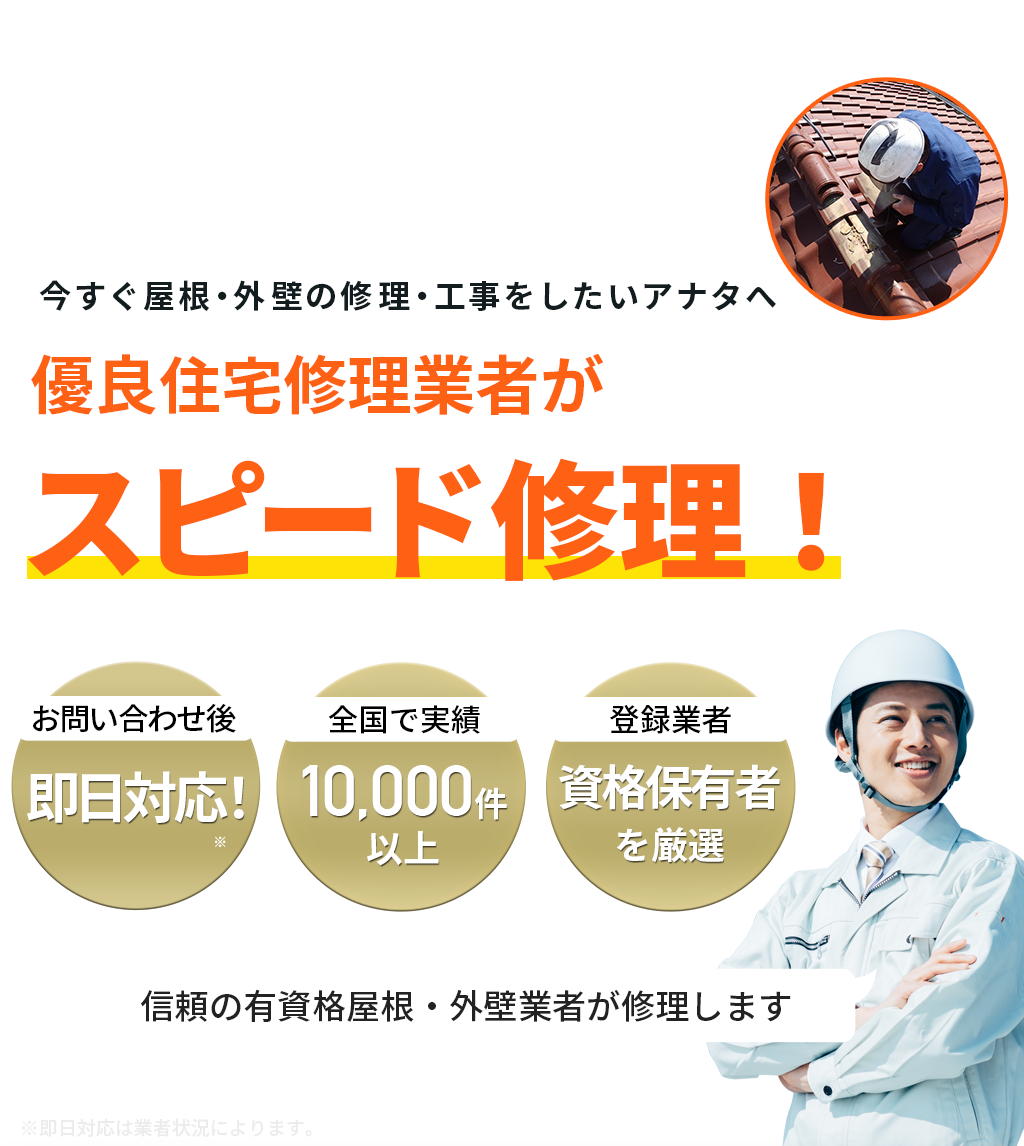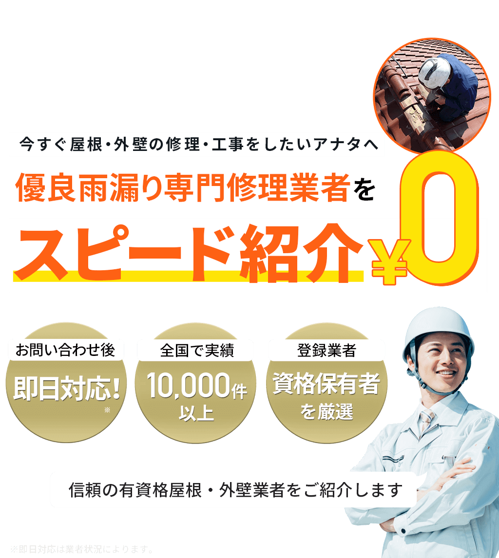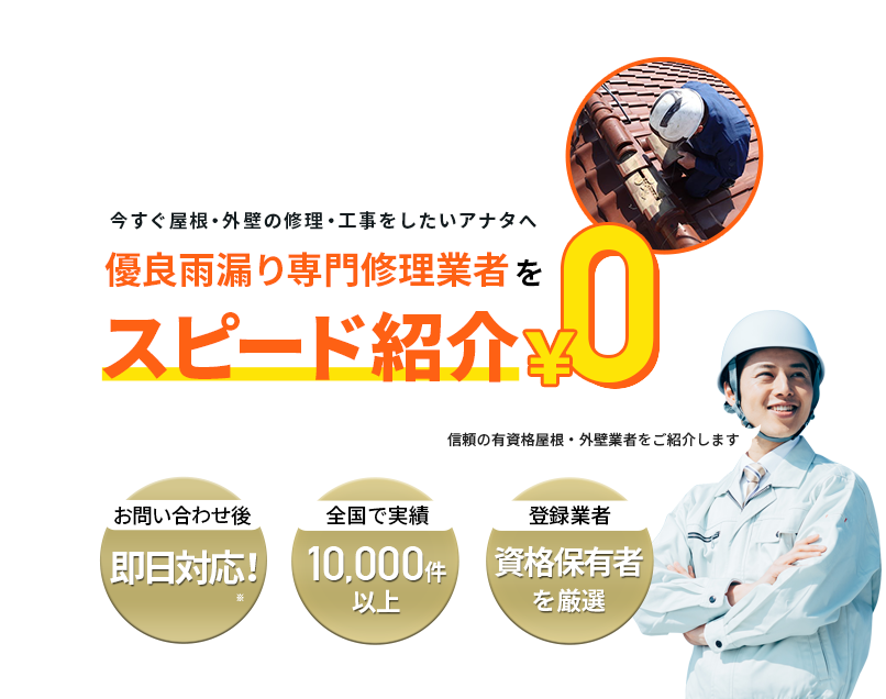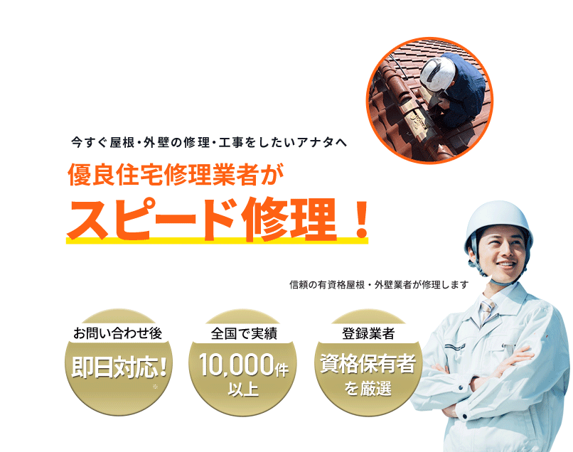 【お急ぎ対応受け付けます!】住宅やベランダの屋根、外壁サイディング、雨樋、雨漏りの修理を行う地元の優良工事業者を完全無料でご紹介!あらゆる屋根材(瓦、スレート、板金、トタン、コロニアル、ガルバリウムなど)での屋根の修理に対応可能!適正金額での修理・工事だから安心!