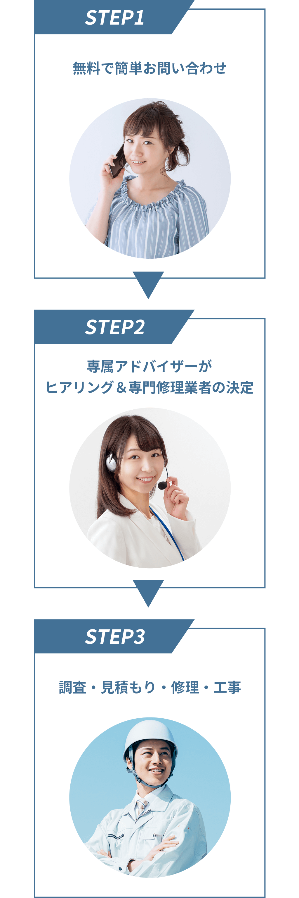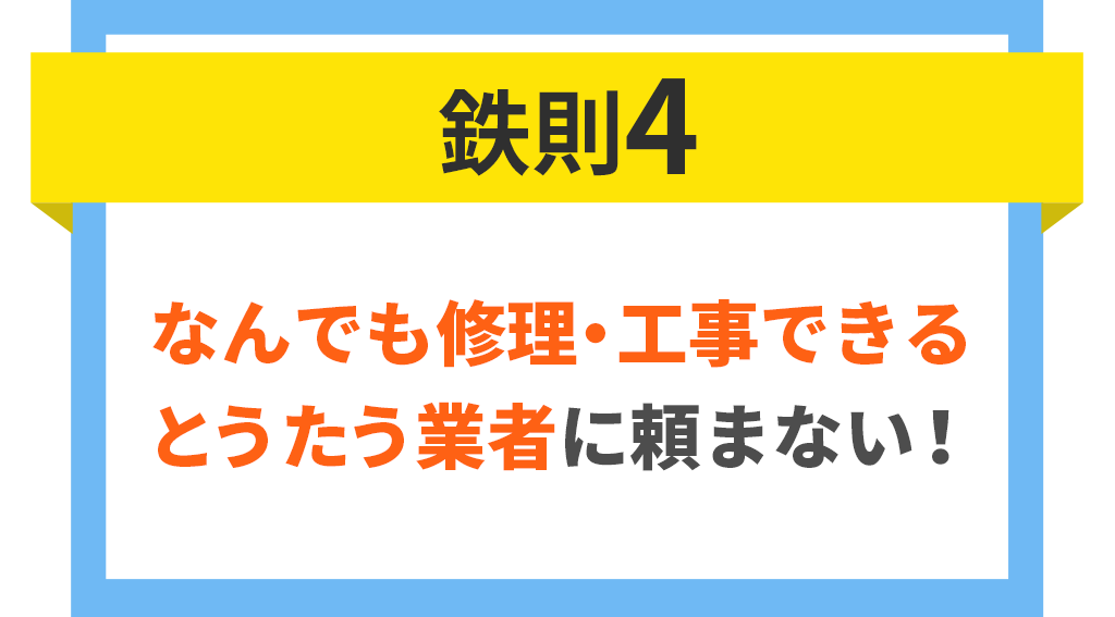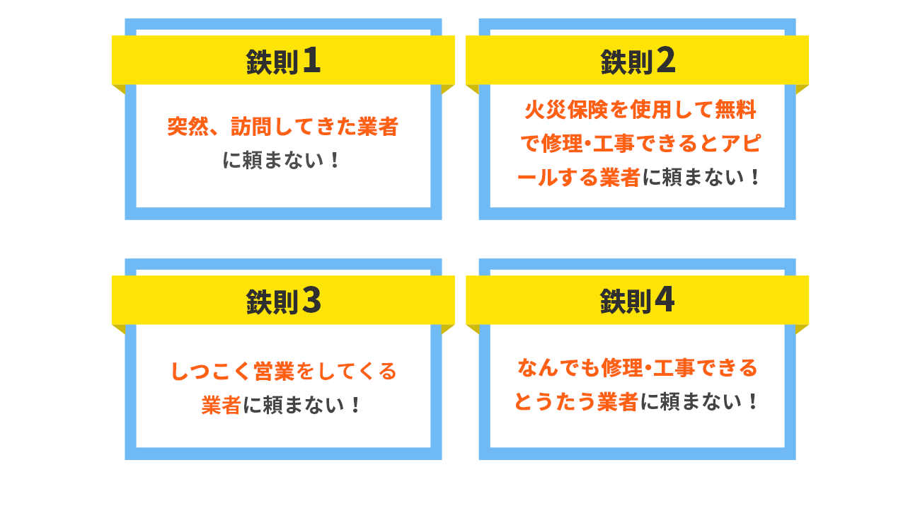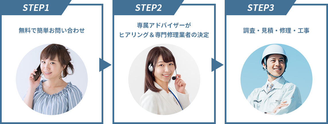スタッフが一件一件回り、厳選した専門修理業者のみ加盟しており、悪徳業者による不当な価格のつり上げが行われるリスクがありません。そのため、不当な高額請求をされることはありません。