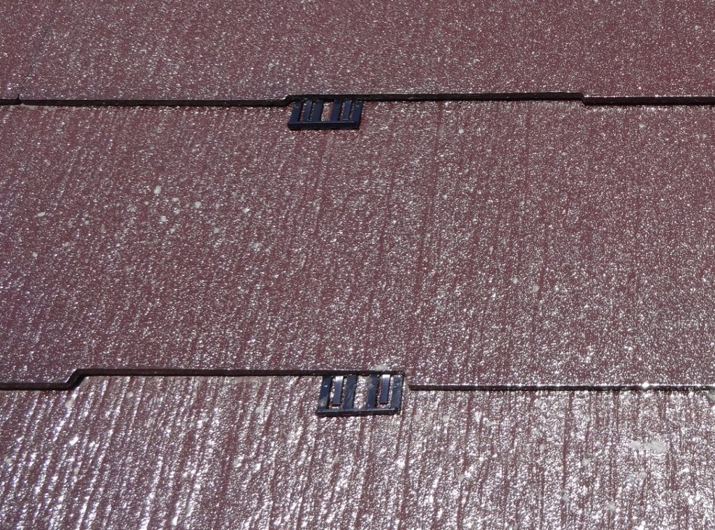 使い方はシンプルで、屋根材の重なり部分(水の流れる方向に対して左右)に、適切な数を差し込んでいくだけです。