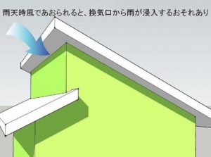 | 屋根裏換気 | 換気が不十分になりやすく、結露リスクが高い | |