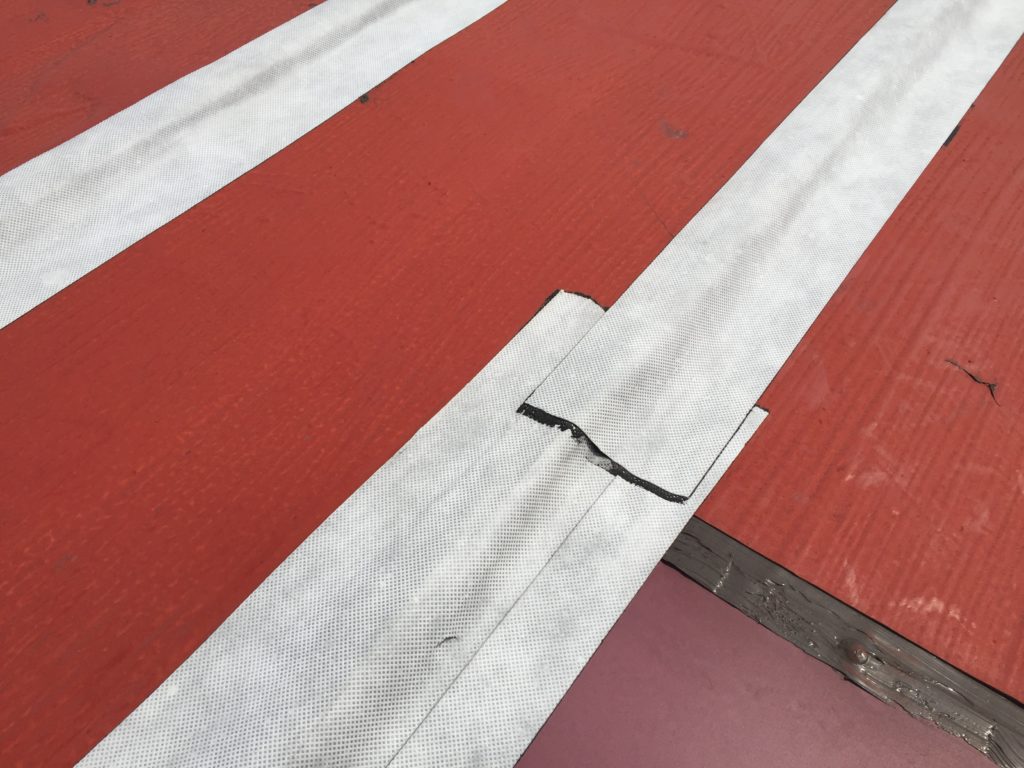 - 雨水の流れに逆らうように、下から上に向かってテープを貼り付けます。
