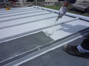 2. プライマー塗布: 補修箇所に、プライマーを刷毛で薄く均一に塗布します。プライマーは、コーキング剤とトタン屋根を強力に接着させるための「両面テープ」のような役割を果たします。