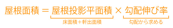 図面から屋根投影平面積と勾配を調べ、この2つがわかれば以下の計算式で大まかな屋根面積を計算できます。
