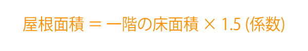 床面積が60㎡の場合、「60×1.5=90」となり屋根の面積は約90㎡になります。
