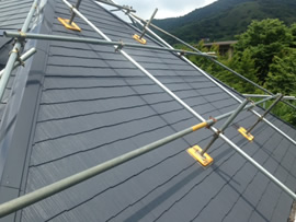 急勾配の屋根、雨樋も交換する場合、住宅地で近隣配慮が特に必要な場合には足場を設置することが多いです。